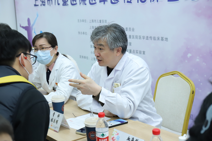 上午9点,泸定路院区的门诊大厅内,由上海市儿童医院专家团队及上海市医师协会临床遗传专业委员会会长及成员组成的多学科团队,开展了“一站式”遗传病会诊。专家们为预约及现场患儿家庭提供了免费诊疗建议、基因报告解读及长期随访指导。经过专家评估,6个疑难家系被选中,将由院士领衔的团队针对患者的突变位点制定验证方案,通过前沿技术深度解析基因功能,为患儿家庭带来更多希望。