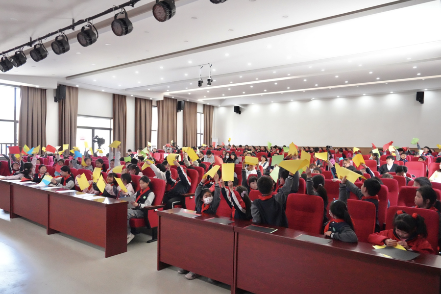 每演奏一首曲子,孩子们就会举起手中的“情绪色卡”,用红、蓝、绿、黄不同的色彩对应不同音乐情感