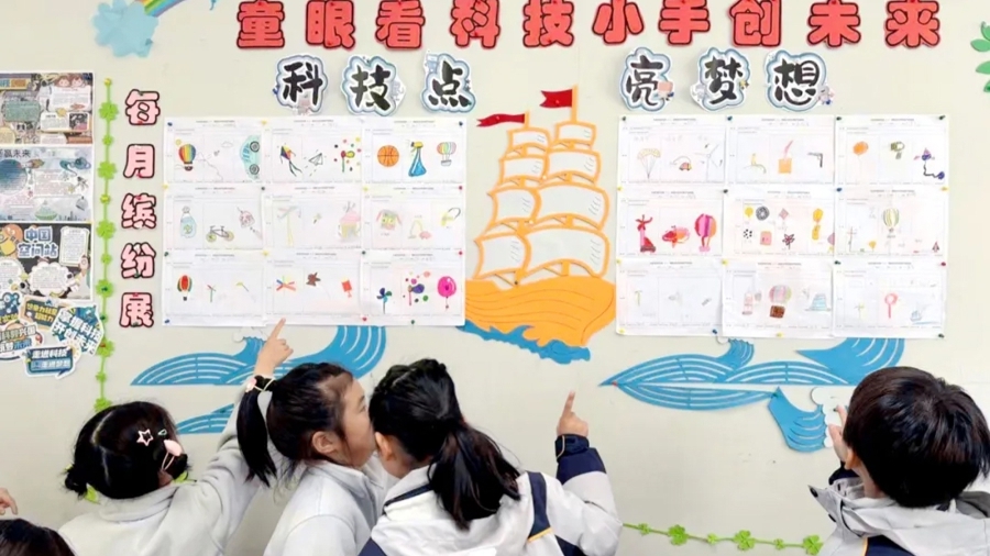 题图说明:高安路第一小学引导学生以好奇的眼光探究科学。